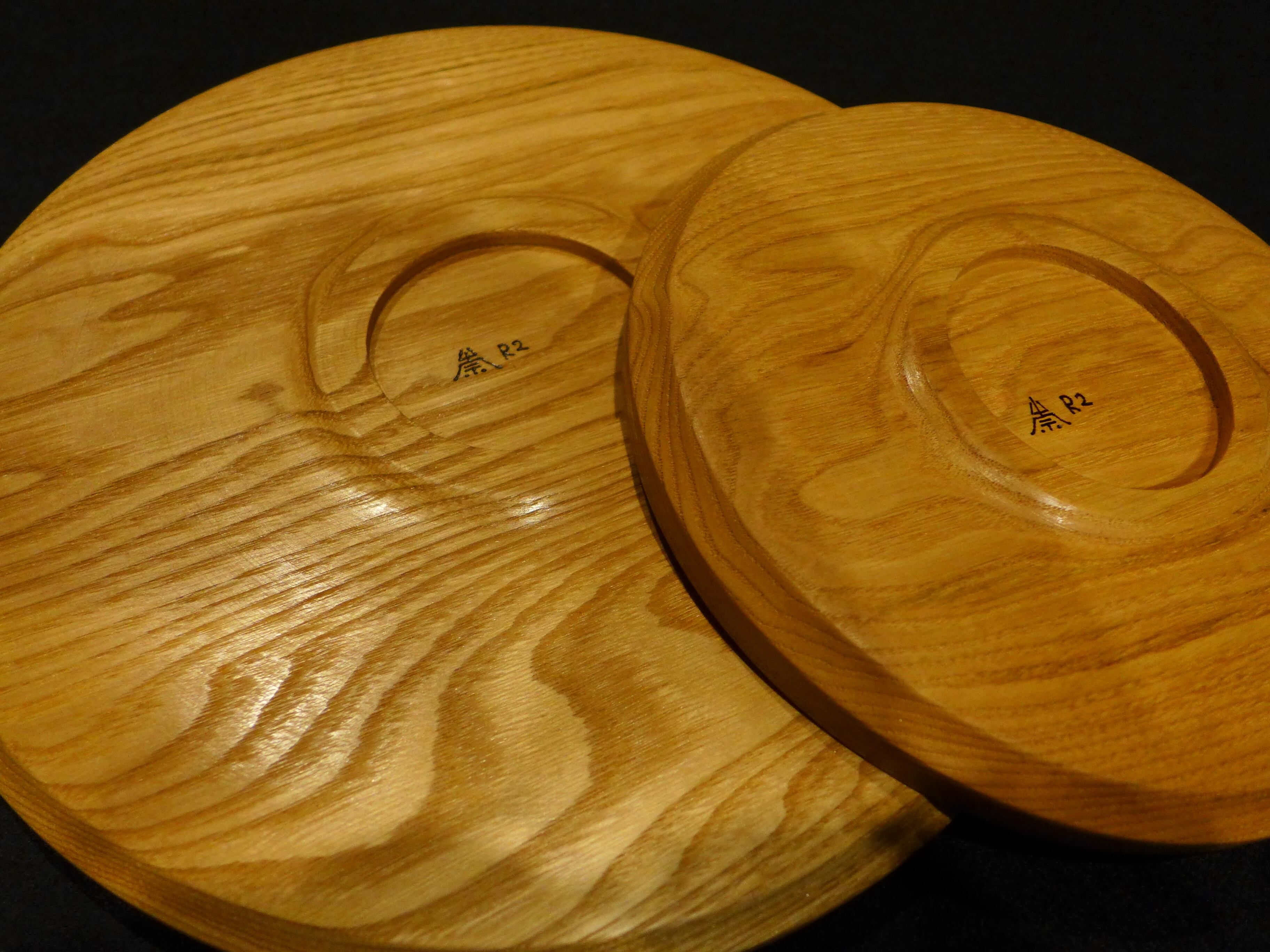栗の板から削り出した平皿のセットになります。