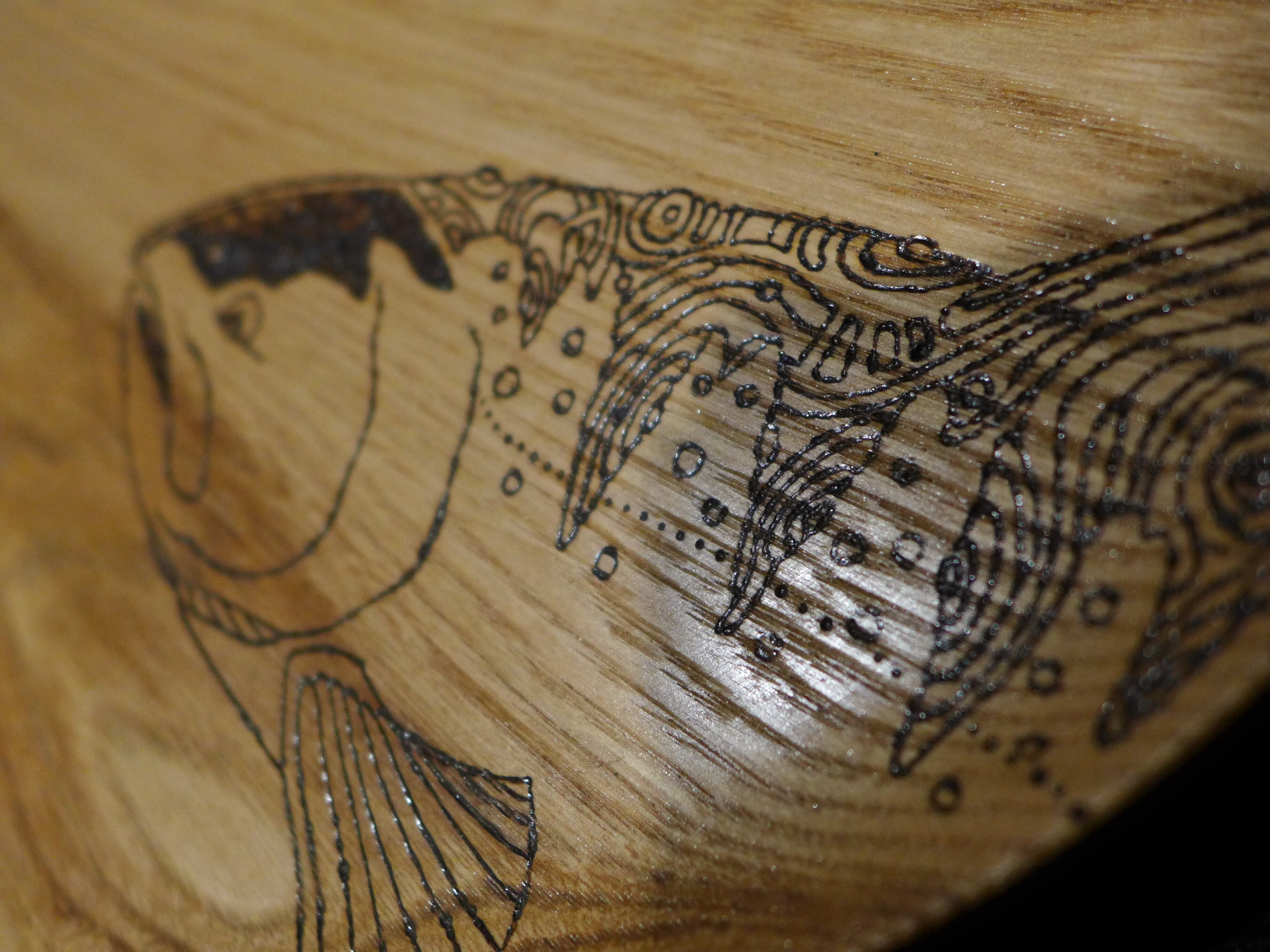 オリジナルトラウトの模様をデザインしたものを2枚1セットでバーニングペンをつかって描いてあります。
